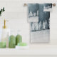 Misty Christmas Mountain Hills avec des arbres, imprimé sur un ensemble de 3 serviettes de bain. Un ensemble festif comme cadeau pour votre maison ou vos proches. Rustique mais élégant. Élève n'importe quelle salle de bain. Peut modifier la combinaison du jeu. Joyeux 🤶