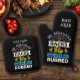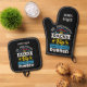 Le porte-mitt et le porte-pot du four noir sont personnalisés avec votre nom et les mots "J'aime mes Racks Big et mon Meat Rubbed." Idéal pour la fête des pères ou son anniversaire.