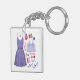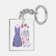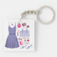 Ajoutez une touche de glamour à vos clés ou à votre sac à main avec ce porte-clés élégant de la collection de mode violette. Cet accessoire mignon met en vedette une illustration de haute qualité d'une robe à pois lavande, d'un collier en forme de cœur et d'icônes de beauté dans un design moderne à plat. Les tons magenta et violet vif facilitent sa recherche dans votre sac tout en montrant votre amour pour tout ce qui est tendance. C'est un petit cadeau parfait pour les demoiselles d'honneur, les cadeaux de fête d'anniversaire ou une gâterie pour toute fashionista qui aime les accessoires coordonnés.