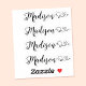 Faites une déclaration élégante avec nos Stickers Set of Four Calligraphy Name. Ces autocollants branchés présentent votre nom imprimé dans une police de caractères élégante et cursive, avec un look signature qui respire l'élégance. Le nom se termine par un coeur tourbillonnant, ajoutant une touche de charme girly au design. Chaque autocollant vinyle découpé est méticuleusement placé sur un seul autocollant plus grand. Que vous souhaitiez personnaliser votre ordinateur portable, votre carnet ou tout autre objet, ces autocollants de haute qualité sont parfaits pour présenter votre style unique. Ajoutez une touche de sophistication à vos effets personnels avec ces autocollants de nom élégants et personnalisés.