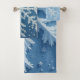 C'est un ensemble de serviettes de bain. Il a des motifs motifs en cristal de neige.