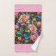 De élégantes roses vintage couvrent ce magnifique ensemble de serviettes de bain.
