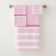 Montrez votre amour pour le rose en décorant votre salle de bain avec cet ensemble moderne de serviettes de bain rayées rose et blanc. Cette serviette a été conçue pour une fille moderne. Coordonner cette serviette de bain avec le même rose dans une serviette à motifs fleuris et il ajoutera de l'intérêt à votre décor. Achetez comme un ensemble de serviettes de base ou offrez-en un cadeau à un ménage ou à une autre occasion.