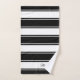 Serviette de bain minimaliste et chic. Ce design présente un thème rayé noir et blanc moderne avec votre texte personnalisé inclus dans le coin inférieur droit de chaque article. Ce bel ensemble comprend un linge de toilette, une serviette de bain et une serviette de bain qui peuvent être achetés ensemble ou séparément. Ce set de serviettes ferait un grand cadeau pour une douche nuptiale, un anniversaire ou pour une fête de ménage.