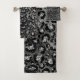 Serviette de bain Poster de animal Empreinte de léopard noir et gris argenté. Comprend serviette de bain, serviette et linge de toilette.