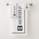 Monogramme de nom personnalisé moderne et chic ensemble de serviettes de bain. Luxueux serviettes de bain monogrammed noir et blanc. Design stylisé de la typographie à imprimer pour lui ou elle. Décor maison élégant pour salle de bain, toilettes, maison d'hôtes, hôtel, chambre d'hôtes, cabine etc. Couleur arrière - plan personnalisée en option. Comprend un petit linge, une petite serviette et une grande serviette de bain. Une impression de chaleur unique de haute qualité présente l'idée pour les amis, la famille, le couple mariage, les jeunes mariés, monsieur et madame etc. Nouveaux accessoires de maison avec lettre initiale de nom. Combinaison pour intérieur luxueux. Ajoutez votre nom de famille et votre lettre monogramme. Créez ses cadeaux et ses cadeaux.