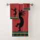 Sud-Ouest Red Kokopelli. Les Petroglyphes de la grotte Kokopelli, Abstraite d'Amérique du Sud-Ouest, sont des Petroglyphes. Vivid Rouge serviettes de toilette combinaison de couleur que vous pouvez customiser des couleurs arrière - plans pour correspondre à votre décor de salle de bain. Kokopelli est une divinité de fertilité, un joueur de flûte à bosse, qui gagne les cultures amérindiennes. Attribué à des aliens anciens ou à l'art tribal et inspiré de dessins rupestres et rupestres. Customisez vos serviettes de bain Kokopelli couleurs et styles. Grande idée cadeau pour ceux qui réfléchissent aux mystères anciens de la planète.