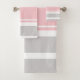 Rose en pastel, serviette grise et blanche de motif de rayure, serviette de main et ensemble de tissu de visage. Le cadeau parfait pour des salles de bains, couples, enfants, filles, adolescentes, hommes, famille, l'épouse nouvellement, dortoir d'université, maison de plage, maison de vacances, bateaux, cadeau de fiançailles, cadeau de mariage, Noël, anniversaires, université.