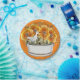 Papierteller mit Duck und Blumenmuster auf orangefarbenem Hintergrund. Dank der Hungryjpeg für einige Elemente in der Gestaltung.
