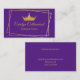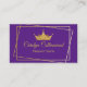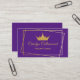 Elégant carte de visite de concours de beauté fait en violet, avec un cadre doré moderne et couronne de ton or. Personnalisez tout le texte pour votre entreprise de concours.