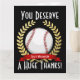 Une carte de gratitude géante customisée pour l'entraîneur de baseball qui mérite un grand merci La carte comporte une fausse couronne d'or à effet imprimé entourant le ballon de sport. En dessous, un endroit pour un nom personnalisé pour rendre la carte plus personnelle.