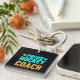 Porte - clé de l'entraîneur de hockey avec aqua bleu et or texte Proud Hockey Coach.