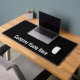 Le tapis de bureau est noir. En bas, il y a du texte blanc que vous pouvez remplacer par le nom de votre société ou un message personnalisé.
