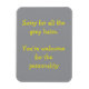 Entschuldigung für all die grauen Haare. Gern geschehen für die Persönlichkeit