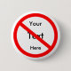 Fügen Sie Ihre eigenen Wörter oder Bild diesem grundlegenden KEIN Knopfentwurf hinzu und geben Sie eine Erklärung ab, ernst oder lustig. Ändern Sie die Größe, die Knopfform oder die Farbe, und fertigen Sie die Wörter besonders an. Addieren Sie ein Bild oder eine Grafik. Oder nehmen Sie einfach die Wörter heraus und haben Sie einen General KEIN Abzeichen.