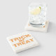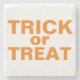 Für diejenigen, die nicht viel Aufregung oder Schnörkel mögen, bietet dieser Untersetzer ein einfaches Design mit Schrift. Dieser Halloween-Untersetzer hat orange, Text, der "TRICK oder TREAT" lautet.