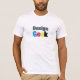 Ein T - Shirt für Grafikdesigner überall mit dem Wort "Geek" in CMYK (cyan-blaues magentarotes Gelbes und schwarz).
