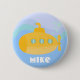 Entzückender Cartoon eines gelben Unterseeboots mit blauen Fensterscheiben mit den Blasen, die von der Seite herauskommen. Hintergrund des Blaus bewegt wellenartig, um zu veranschaulichen, dass das Unterwasserhandwerk underwater versenkt wird. Dieser attraktive Entwurf mit seinen hellen Farben ist für Kinder ideal. Entwurf ist Geschlechtsneutrale person. Entworfen durch rostiges Gekritzel.