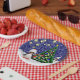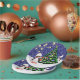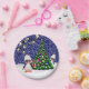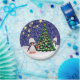 Füllen Sie diese Partyplatte mit guten Sachen an Ihrem Winter oder an WeihnachtsPartys. Dieser Spaßentwurf besteht aus Medien mischen für eine niedliche Szene im Freien. Meine Fotografie eines Schals und der Strickkappe, die handgemachte Walnuss Penguinverzierung tragen, wird Szene mit digitale Kunst eine schneebedeckte, starry Nacht und eines Weihnachtsbaums als der Hintergrund gemischt.