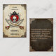 Conception de carte de visite grunge orientée de pirate. Comporter deux a croisé des épées de pirate et une illustration rouge fleurie de coeur avec un crâne.