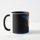 Fuel your intense late-night gaming sessions or kickstart your busy morning work routine with this spectacularly vibrant elemental ceramic mug. Utilizing the larger 15oz format, this mug allows the breathtaking horizontal artwork to wrap beautifully around the entire surface. Every sip immerses you in the intense, cinematic collision of glowing blue magic and fierce orange fire, complete with a brilliant glowing crest in the center and dynamic sparks flying across the deep black background.