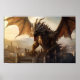 Epischer Drache über mittelalterliches Stadtplakat Poster