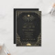 A luxurious black and gold wedding invitation featuring radiant celestial motifs and geometric Art Deco detailing. Personalized with names, date, and venue, this design brings timeless elegance and cosmic symbolism to your celebration. Please note: gold is a printed color, not metallic or foil.