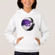 Cette équipe de basket-ball personnalisée couleurs sweat - shirt à capuche pour les enfants présente l'image réaliste d'un basketball qui a alternativement des panneaux recolorés violet, blanc et noir sur lesquels vous pouvez personnaliser le numéro de maillot de l'athlète - par katz_d_zynes