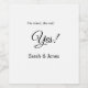 Er fragte, sie sagte ja Verlobung einfach minimal Weinetikett