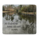 Friedliche Baumszene, die sich in ruhigem Wasser widerspiegelt, und Psalm 23: "Er führt mich neben den stillen Wassern."