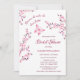 Diese Brautdusche-Einladung enthält den Text: "Weil er ihr Herz flattern lässt" und einen heißen rosa Schmetterling und Kirschblüten auf weißem Hintergrund. Romantische Brautdusche in eleganter Kalligraphie. Auf der Rückseite ist ein QR Code für die Person der Ehrenschenken-Registrierung.