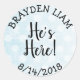Er ist hier, New Baby Boy Ankündigung Runder Aufkleber