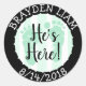 Er ist hier, New Baby Boy Ankündigung Runder Aufkleber