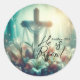Er ist Risen Cross mit Osterlilien und Eiern Runder Aufkleber