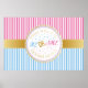Dieses Plakat ergänzt Ihre Veranstaltung zum Thema "Gender Enthüllung" perfekt. Halten Sie es am Nachtisch fest oder nutzen Sie es einfach, um Party-Fotos zu nehmen. Personalisiertes Poster: https://www.zazzle.com/personalized_gender_reveal_poster-228238825739791393