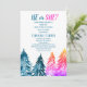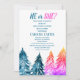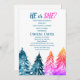 Schnee in der Liebe, Winterwunderland, Blau, Weiß, Schneeflocken, Bäume Winter Geschlecht offenbaren Einladung. Elegante, schöne Babydusche. Handgemalte Aquarellmalerei des Waldes allein. Personalisieren Sie es mit Ihren Daten.