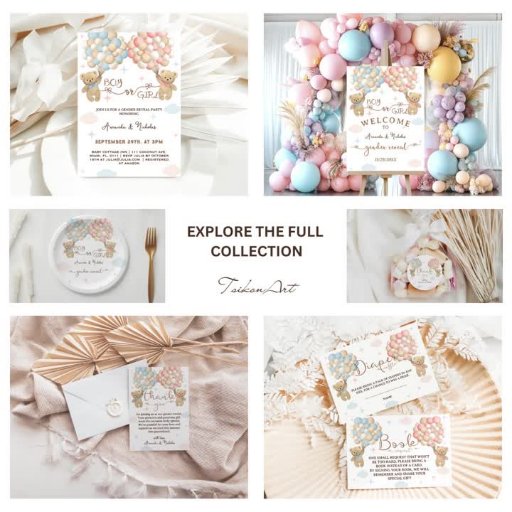 Dieses niedliche Geschlecht lädt in pastellfarbenen, sanften Farben ein, Aquarellbären mit rosa und blauen Ballons, funkelnde Sterne und Wolken. Diese Gender-Einladung ist eine Mischung aus minimalistischem, elegantem und modernem Stil. Vergessen Sie nicht, die komplette Sammlung zu entdecken!