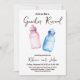 Er oder sie zeigt eine blaue und rosa Babyflasche Einladung