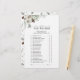 Mit der Brautparty "Who War First" Game Card können Sie sich mit Lachen und freundlichem Wettkampf begnügen. Dieses wunderschön gestaltete Spiel mit eleganten Winterfloralen, Nadelhölzern und immergrünen Spitzen fordert die Gäste auf zu erraten, wer es zuerst gemacht hat - Braut oder Bräutigam. Mit einem übersichtlichen und gut organisierten Layout ist es leicht zu spielen und ideal, um bei Brautpartys, Verlobungsfeiern oder Paaren das Eis zu brechen. Professionell mit TrueMatch™-Farbtechnologie gedruckt, um präzise, lebendige Details zu gewährleisten, die sich nahtlos mit der Erholung der Brautparty-Schreibgerätesoftware abstimmen. Copyright Anastasia Surridge, alle Rechte vorbehalten.