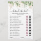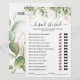 Machen Sie Ihr Brautparty zu erinnern mit diesem eleganten Grün "sagte er, sagte sie" Brautparty-Spiel! Mit grünen Aquarellfarben eucalyptus foliage Blätter, trendigen goldenen Blumenakzenten und eine Textvorlage, die leicht personalisiert werden kann.