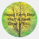 Grüne Baumhirten am Tag der Erde, rund Sticker. "Happy Earth Day! Pflanze ein Saatgut, Baum wachsen."