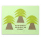 Dieses phantastische Notizblock weist ein grafisches Bild von drei Bäumen auf, die Palmen mit großen grünen Blattfronten und einem robusten, braunen Baumstamm ähneln. Es gibt eine Nachricht in braunem Text, die wie Boden unter den Bäumen aussieht. Die Nachricht sagt Happy Earth Day.