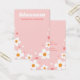 Die Schmuckkarte mit weißer Erdbeerblüte auf rosa Hintergrund und Ihrem Firmen- oder Designnamen in einem Retro-Schriftart.