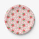Rosa Teller mit Erdbeermuster, Blume, die Erdbeeren umgeben. Perfekt für Geburtstage und Babyduschen! Erdbeerpapier-Teller in Rosa, Weiß, Rot und Grün.