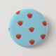 Erdbeerblaues Knopf-Button. Kundengerechter Knopf hat niedliche rote Erdbeeren auf einem hellblauen Hintergrund.