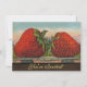 Antique Funny Giant Strawberry Train - Diese Erdbeerauswertung basiert auf einer Postkarte aus dem Jahr 1911, die zwei gigantische Erdbeeren zeigt, die mit dem Zug quer durch das Land transportiert werden. Die Erdbeeren sind größer als ein Haus! Es handelt sich um riesige Erdbeeren, die für Riesenmenschen gedacht sind, die irgendwo in den Fernen des Erdbeerkönigreiches leben! Die Erdbeeren sind etwa so groß wie ein Haus, helle rote Beeren, und sitzen auf einem flachliegenden Zugbett und rollen die Bahngleise hinunter.