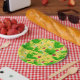 Ich malte Erdbeeren-Blätter, Blüten und Früchte mit Aquarellen, dann scannte ich das Bild und machte daraus ein Muster