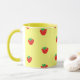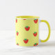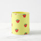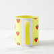 Erdbeergelbe Kaffee-Tasse. Kundengerechte Tasse hat niedliche rote Erdbeeren auf einem gelben Hintergrund.
