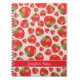 Desteis Cartoon illustriert eine rote Erdbeerfrucht als Muster. Die Hintergrundfarbe ist hellrosa und es gibt einen personalisierbaren Textbereich für den Titel des Notebooks.