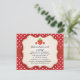 Diese süße Einladung der Beere kennzeichnet roten und weißen Tupfenhintergrund. Ein rotes Band und ein super niedlicher Vintager Aufkleber. Illustriert mit drei süßen Erdbeeren.